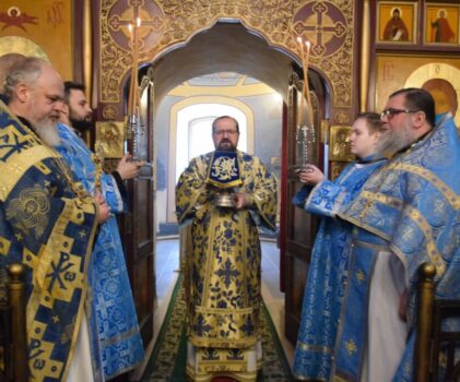 На сугубой ектенье были возглашены прошения и прочитана молитва о мире и преодолении междоусобной брани на Украине.