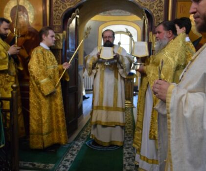 После заамвонной молитвы было совершено славление чествуемым святым дня, после чего епископ Алексий обратился к духовенству, сестраа обители, и молящимся с архипастырским словом.