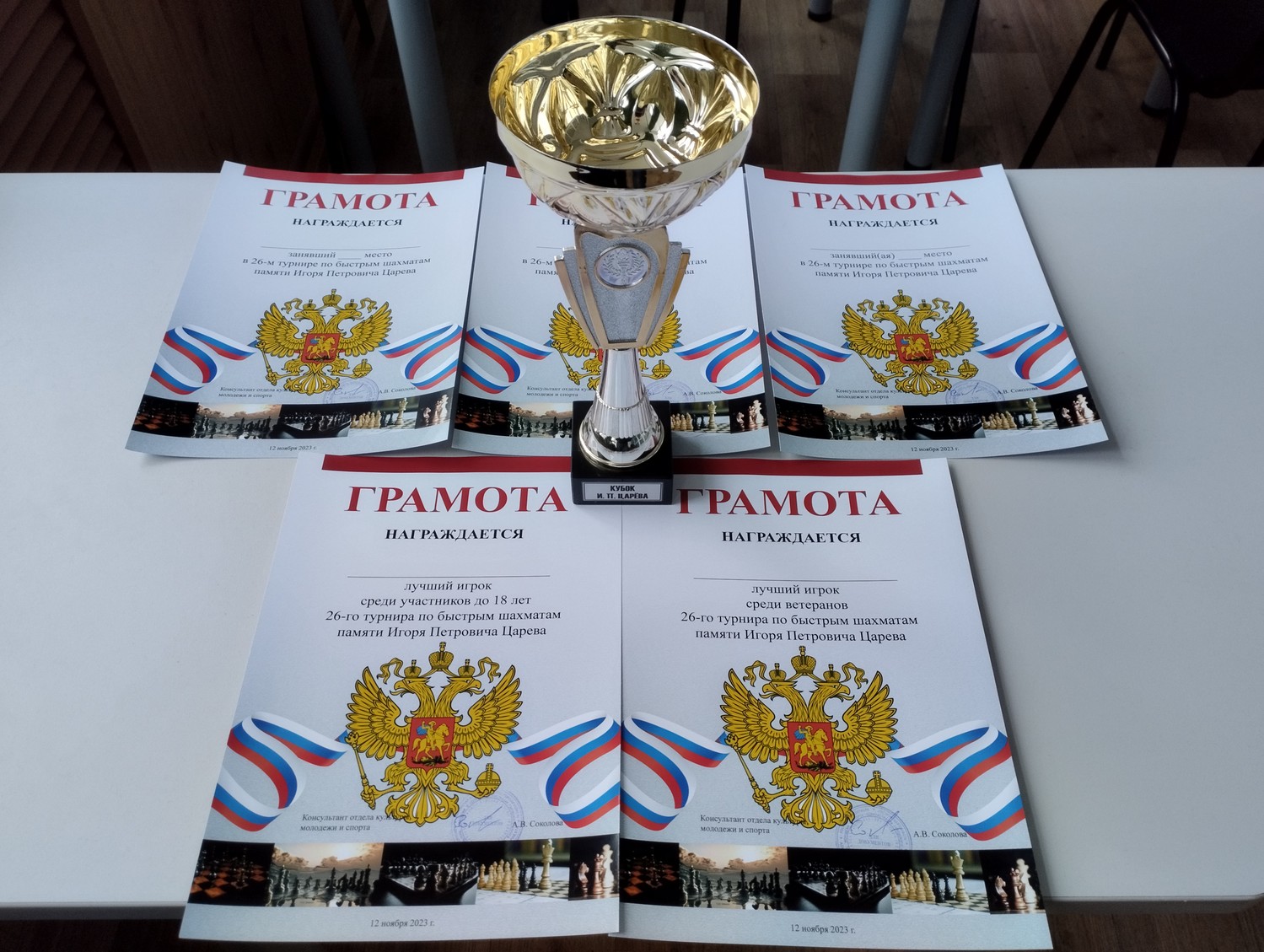 12 ноября 2023 года состоялся 26-й турнир по быстрым шахматам памяти И. П. Царёва.