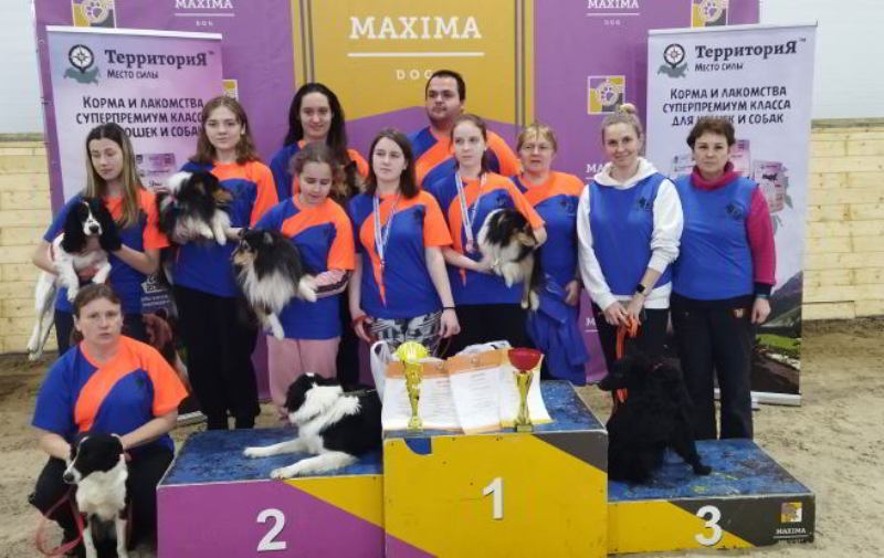 3 место - в командном соревновании - аджилити-эстафета (команда в составе: Курочкин Станислав с бордер-колли Зипи, Колесникова Диана с бордер-колли Вики и Бабынина Екатерина с шелти Эсти).