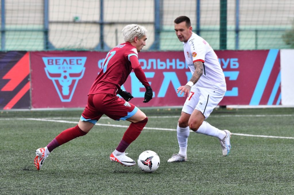Выездной матч против московского «Велеса» не задался для «Спартака» с самого начала. Уже на 6-й минуте мяч оказался в воротах костромичей. Весь первый тайм ушел на то, чтобы восстановить равновесие. В случае с «Велесом» это непростая задача: команду тренирует экс-футболист сборной России и выдающийся защитник Евгений Бушманов, а в обороне играют бывшие футболисты московского «Спартака» Евгений Макеев и Илья Кутепов. Но «Спартаку» удалось сравнять счет. На 37-й минуте отличился Александр Саплинов.
