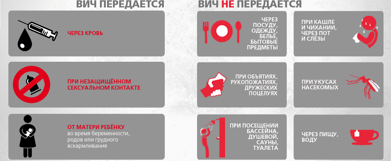 Вирус иммунодефицита человека может находиться в биологических жидкостях человека в разной концентрации. Только в крови, сперме, вагинальном секрете и грудном молоке вирус содержится в максимальной концентрации или концентрации, достаточной для заражения.