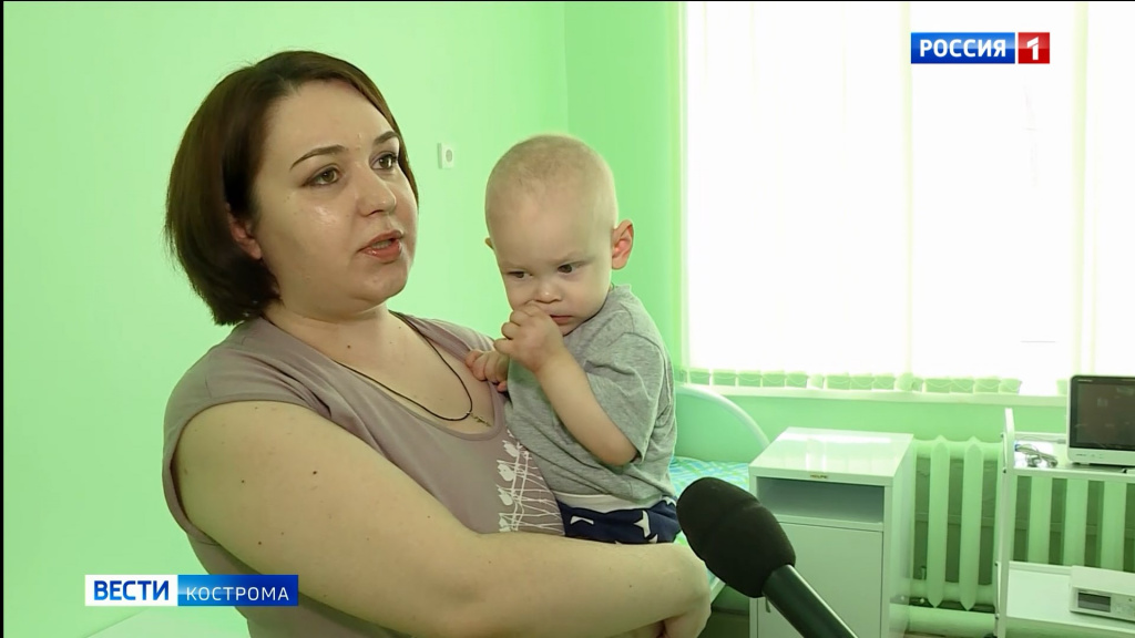 Палаты в новом отделении уже начали заселять. Губернатор Сергей Ситников оценивает условия, созданные здесь для пациентов. Среди первых - костромичка Виктория с сыном. Ивану чуть меньше двух лет. 9 месяцев, из которых он борется с онкологическим заболеванием почки. Была сложная операция в Москве, рассказывает его мама, 28 недель химиотерапии - теперь они здесь, ожидают ремиссии.