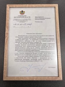 Благодарственное письмо было передано руководству ОГБУЗ «Галичской центральной районной больницы», где на пятиминутке в присутствии коллектива заведующих и дежурных докторов исполняющая обязанности главного врача Мария Александровна Папичева вручила благодарность от губернатора молодому доктору, который был приятно удивлен таким вниманием со стороны администрации Костромской области.