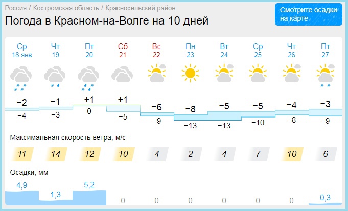 К концу недели в ювелирной столице ожидается потепление - температура воздуха поднимется до плюсовых значений. Синоптики обещают осадки в виде дождя и мокрого снега. Но, если верить сайту Гисметео, уже с воскресенья на смену ненастью придет отличная, по-настоящему зимняя погода. Столбик термометра покажет комфортные -5, -8 градусов. Выглянет солнце.