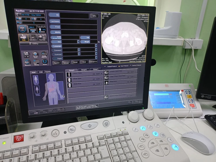 «В данном томографе уменьшено количество дозы излучения в ходе проведения исследования за счет ее автоматического регулирования. Благодаря этому повышается безопасность процедуры относительно других компьютерных томографов. Также это дает возможность при необходимости увеличивать количество исследований и частоту их проведения. Кушетка томографа опускается на самый низкий уровень, что обеспечивает удобство для маломобильных пациентов. Появление нового томографа сокращает сроки ожидания результатов и соответственно увеличивает скорость принятия врачом решения по лечению пациентов. Чем раньше мы проведем исследование, тем раньше будет выявлена онкология, назначено лечение и будет более благоприятное течение», - рассказал главный внештатный специалист по лучевой диагностике Костромской области Егор Ушаков.