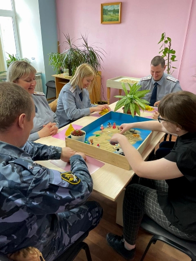 В рамках психологического сопровождения сотрудников, начальник отделения психологического обеспечения уголовно-исполнительной инспекции провела психокоррекционное занятие с сотрудниками с использованием песочной терапии. Цель проделанной работы заключалась в снижении психоэмоционального и психофизического напряжения личного состава, регуляции мышечного напряжения.