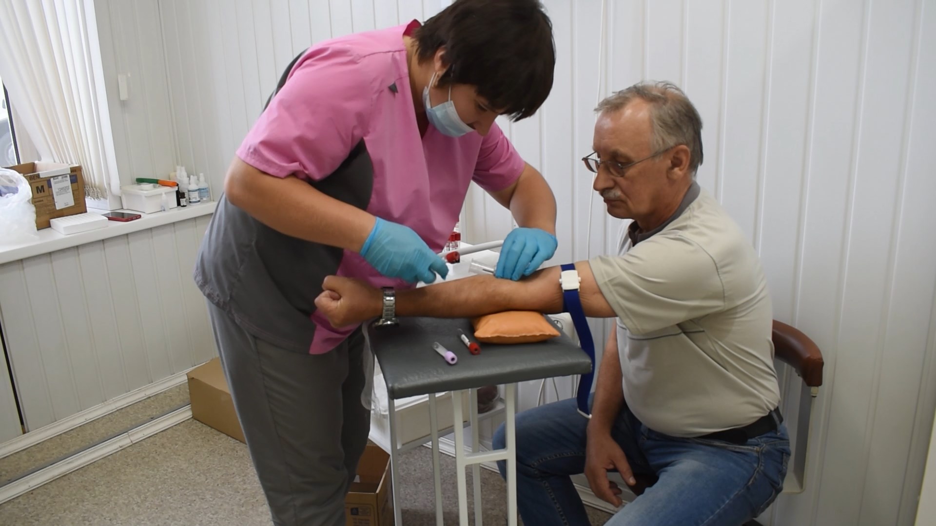 Они развернули на территории несколько пунктов осмотра: кабинет терапевта, узких специалистов, процедурную, мобильный флюорограф и маммограф.