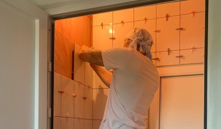 Следующим этапом стало строительство каркасного основания нового пола и обшивка его фанерой. Параллельно с этим стартовала частичная облицовка стен гипсокартоном, а в ряде помещений – процедурном кабинете, санузле – началось выравнивание стен и их облицовка кафелем. Сегодня в этих помещениях досыхает затирка между плиточных швов, стены выровнены и радуют взгляд новыми рядами кафельной плитки. В смотровых и приёмных кабинетах облицовка санитарных уголков под сантехнику ещё только предстоит. Здесь намечены зоны под кафельное покрытие, которые уже обработаны бетон-контактом для лучшего сцепления строительных материалов.