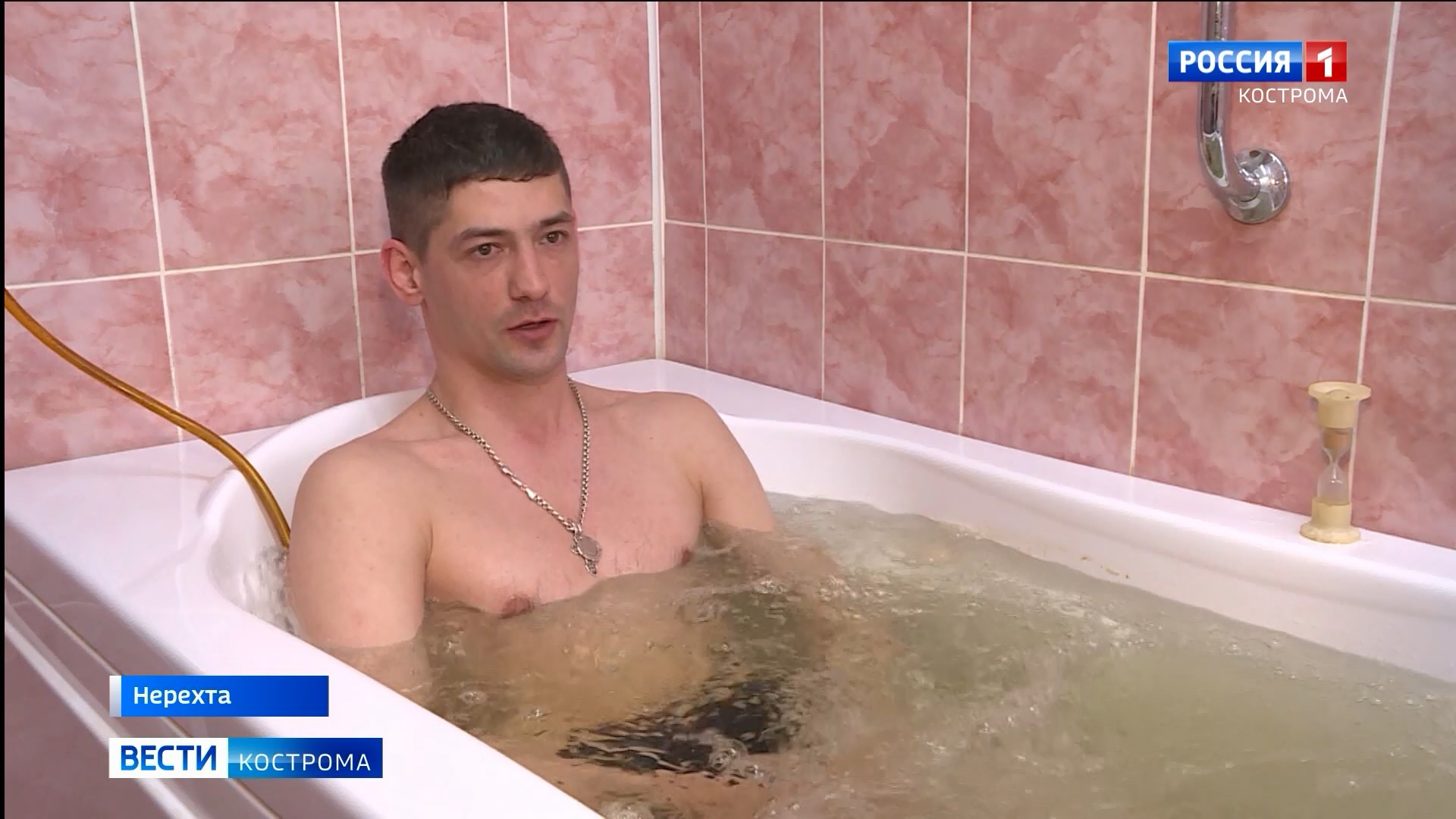 Михаил Румянцев принимает «жемчужную» ванну. Каждый сеанс облегчает боль в колене. Ранение командир артиллерийского орудия получил на территории СВО. Операцию сделали в военном госпитале, отправили на долечивание домой. А несколько дней назад Михаила пригласили в санаторий.
