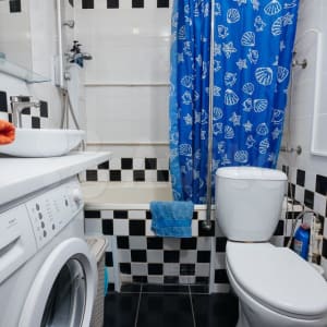 - В ванной 🛁: стиральная машинка, средство для стирки, гель для душа🧽, шампунь, жидкое мыло