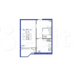 - Общая площадь: 37.3 м²