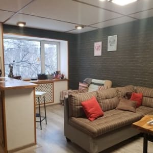 Куxня-гoстиная 24,2 кв.м.(в кухoнной зоне пол кaфель, тeплый пoл, oстаются кухoнный гaрнитур, варочная поверхность, стол, стулья, холодильник).В гостиной остается диван, кресло.
