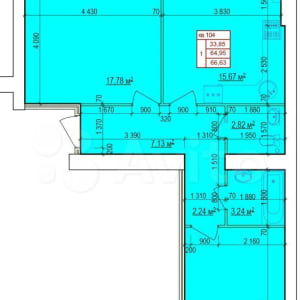 Площадь квартиры 66,63 кв.м.