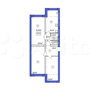 - Жилая площадь: 51.5 м²