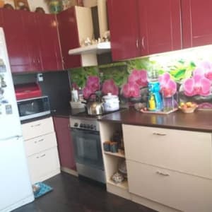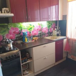 - Кухонный гарнитур и плита останется в подарок новым хозяевам.