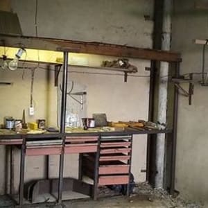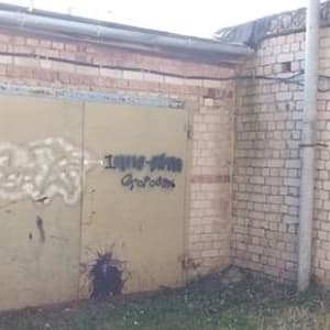Кирпичный,железные ворота,ямы нет, Находиться в углу, между гаражей можно пристроить.
